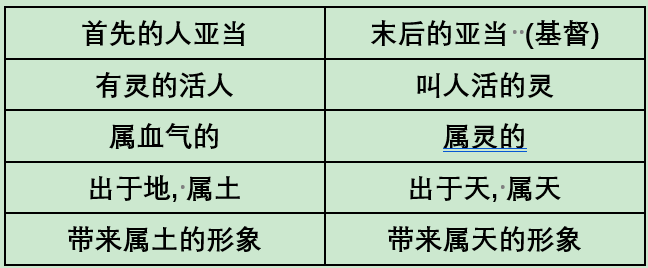 这里有个比较:首先的人亚当与末后的亚当就是耶稣基督的比较。